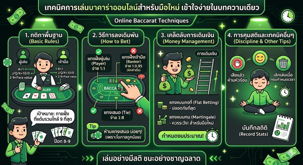 แม้ว่าบาคาร่าเป็นเกมที่เล่นง่าย แต่ผู้เล่นมือใหม่ควรทำความเข้าใจพื้นฐานของเกมก่อนเริ่มเดิมพันจริง